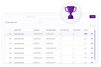 Créez des appels d’offres normalisés, analysez et comparez les réponses, suivez vos fournisseurs et générez facilement vos reportings.