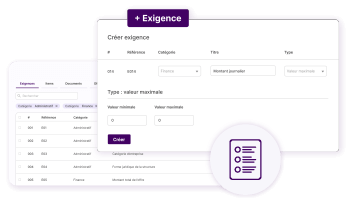 Vous définissez les critères d’analyse et de classement des réponses des candidats en indiquant la criticité et le poids de chacune de vos exigences métier ou tarifaire.